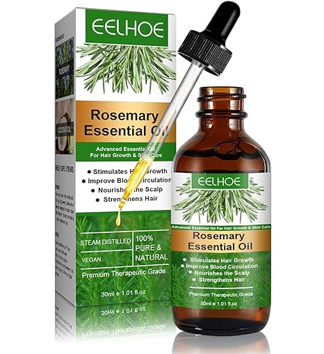 زيت الروز ماري: 3–5 قطرات تدليك خفيف على الفروة أو مع الأطراف (2–3 مرات بالأسبوع).