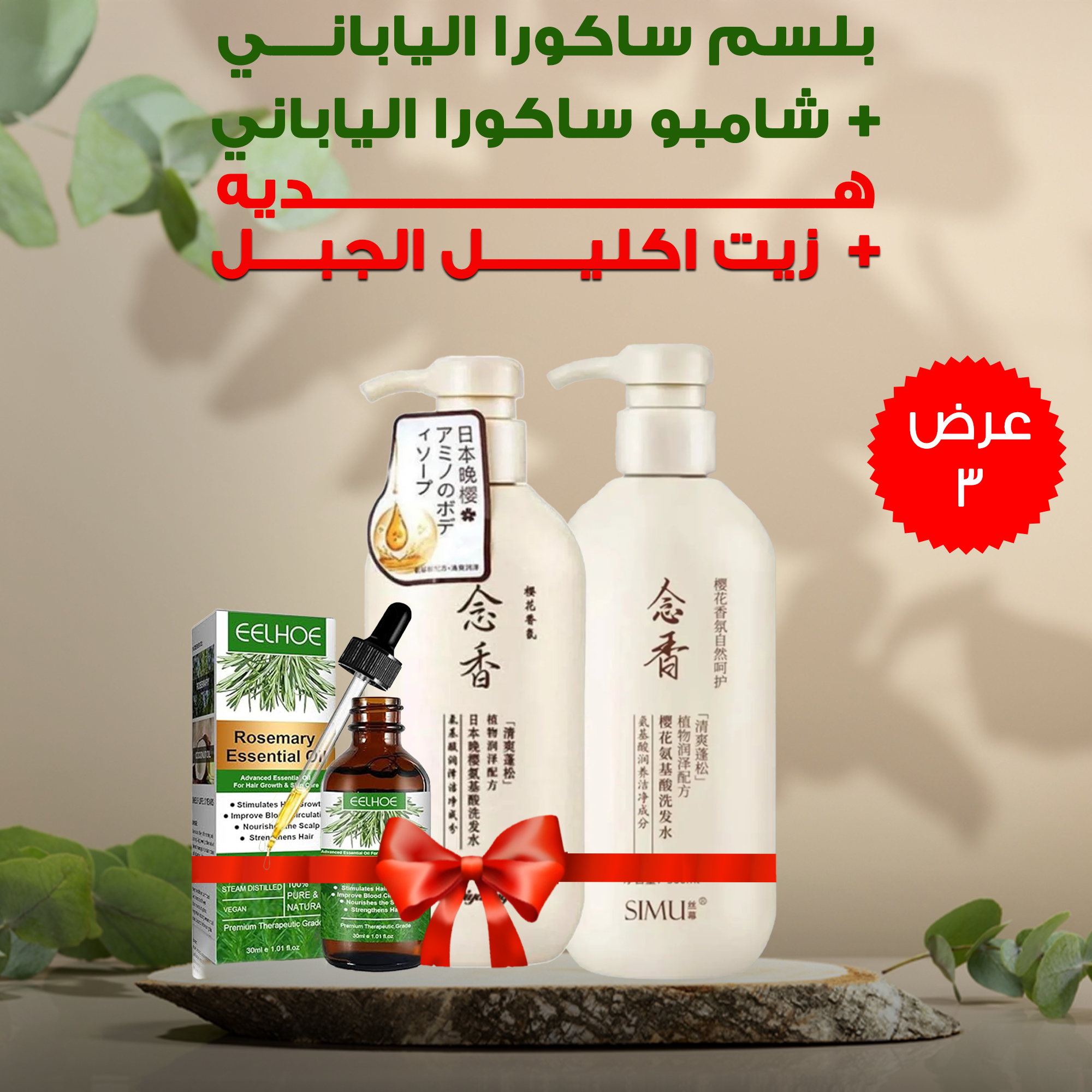 رض (بلسم ساكورا الياباني + شامبو ساكورا الياباني + زيت اكليل الجبل Mille)