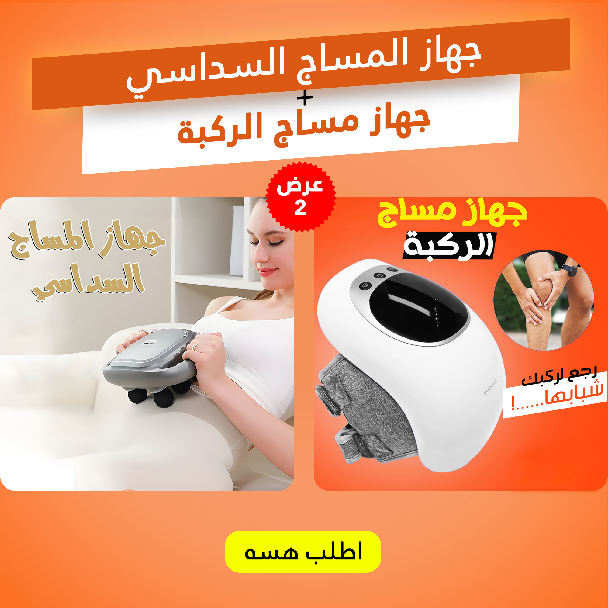 راحة فورية من فوق لتحت! 😍 جهازين مسّاج يكملون بعض: السداسي لعضلات الجسم، والركبة لآلام المفاصل… خلي جسمك يرجع بنشاطه من أوّل جلسة! 💆♂️🦵