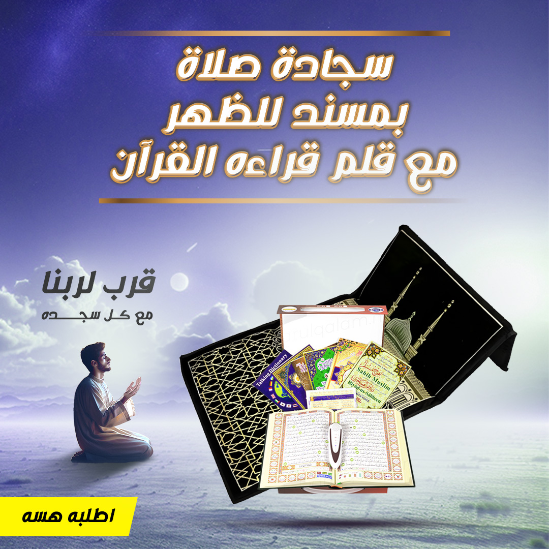 عيش أجواء السكينة والراحة بروحك وبدنك! 💚 قلم ناطق يسهّل عليك قراءة القرآن، وسجادة مريحة تخلّيك تصلي وانت مرتاح، عرض متكامل لكل بيت مسلم 🌙🕌– راحة للروح والجسم بوقت واحد! 🙏📖