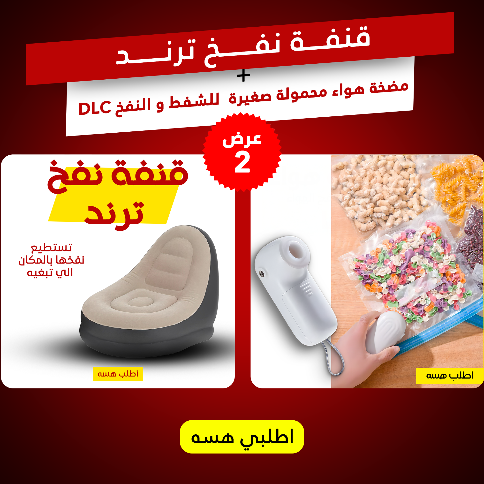 قنفة النفخ الترند وصلت 😍 تنفرش بثواني وتنام وين ما تحب! وياها مضخة DLC صغيرة تشفط وتنفخ بكل سهولة 💨🛋️✨
