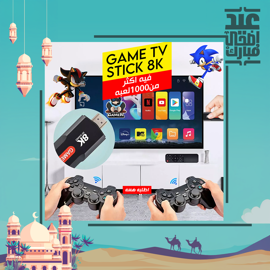 جبنالك جهاز بأحدث إصدار 🎮 بيه 1000 لعبة جاهزة 🤩! يختصرلك كل ألعاب البلايستيشن 2، وبنظام Android TV يحول شاشتك سمارت ويربط الموبايل بالشاشة، وكل هذا بجهاز صغير كلش 🤏 وبدقة خرافية 8K 🔥. العرض يشمل يدين تحكم لاسلكية 👍، مثالي للأطفال ويفرح الكل! ✅