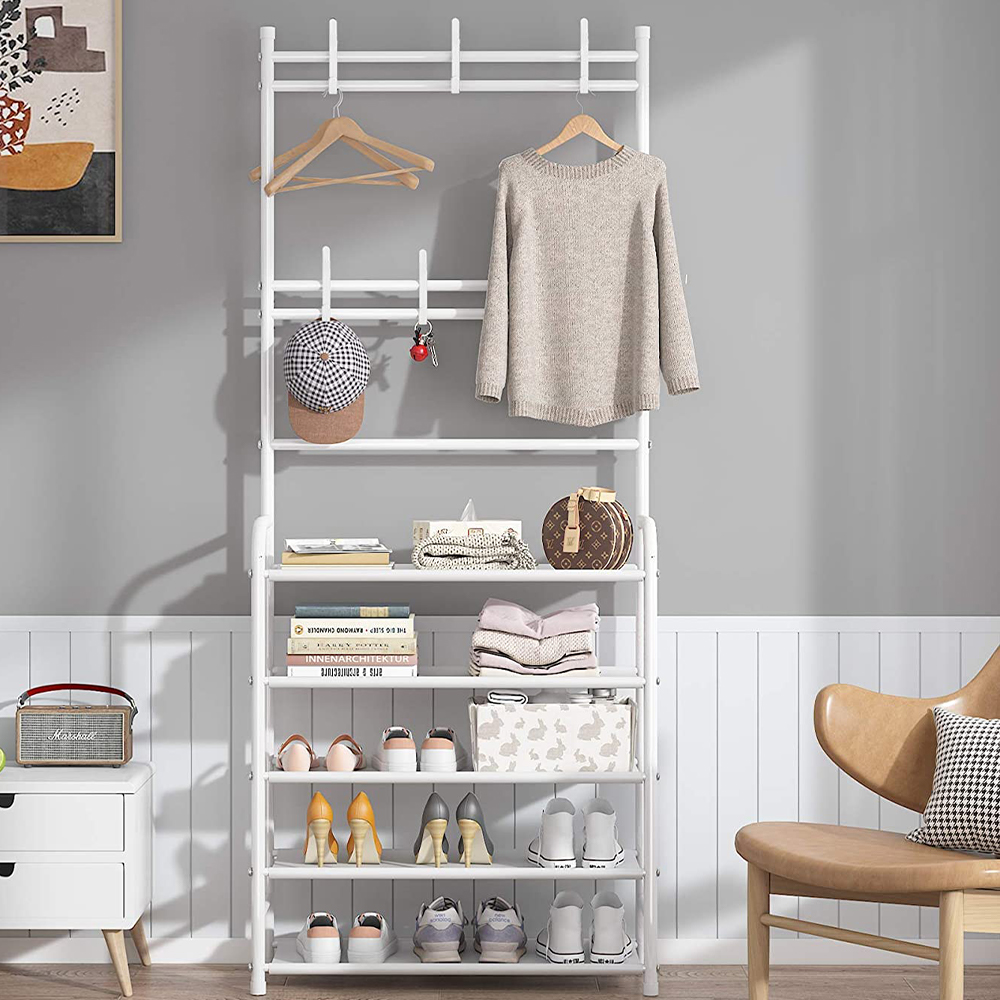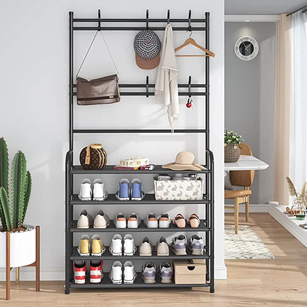 • لا تقتصر وظيفة هذه القطعة على تخزين الأحذية فقط، بل يمكن استخدامها لتعليق المعاطف، والحقائب، والمظلات، وغيرها من الأغراض.