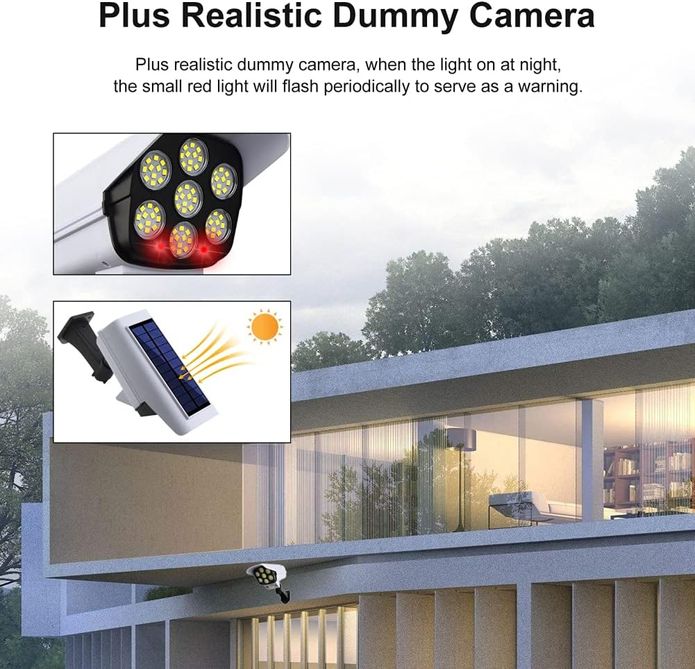تصميمه يشبه الكاميرا الأمنية بنسبة كبيرة، ومع الوميض الأحمر اللي يشتغل بالليل، أي شخص يشوفه راح يفتكر إنه مراقَب بالكاميرا – أمان بدون ما تدفع على كاميرات حقيقية!