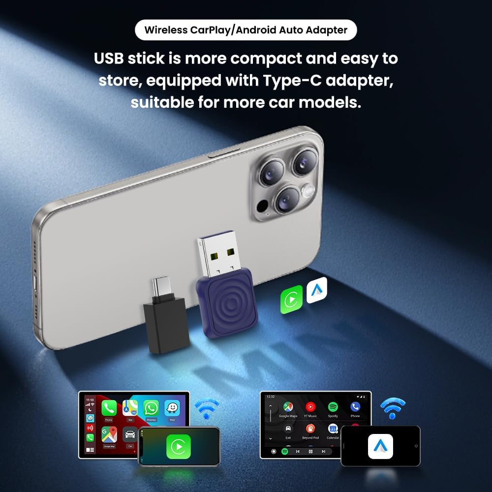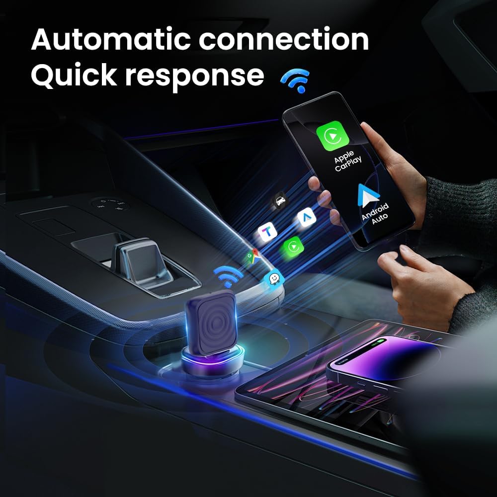 حوّل نظام الـ CarPlay أو Android Auto السلكي بالسيارة إلى نظام لاسلكي بالكامل بدون أي تطبيقات.