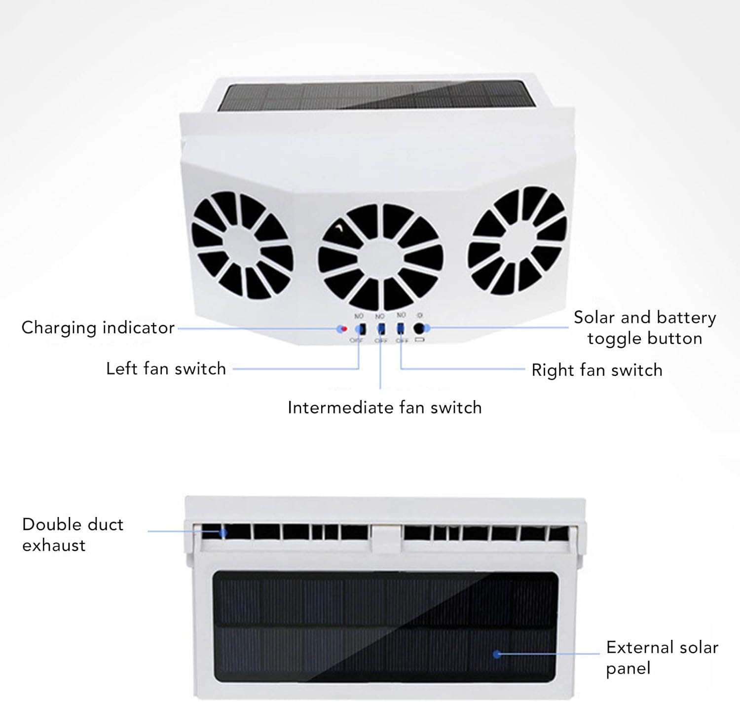 المروحة مزوّدة بثلاث شفرات تهوية بزاوية واسعة، تشتغل على تدوير الهواء داخل السيارة وتطرد السخونة بسرعه، تبرد الداخلية وتخليها مريحة حتى بأعلى درجات الحرارة.