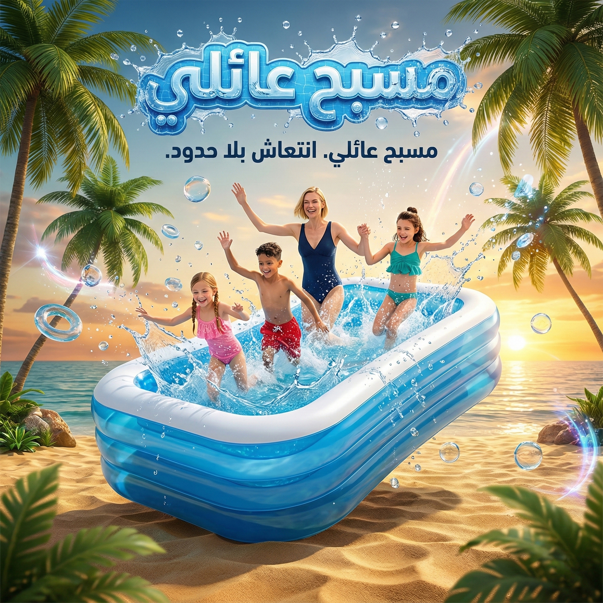 🏖️ صيفها غير ويا المسبح العائلي القابل للنفخ! متعة للكل، وراحتك مضمونة وين ما تحطه 🌞💦جهّز أطفالك وأهلك للونسة، وخلّي الحديقة تتحول لمنتجع مصغّر! 🏡💙