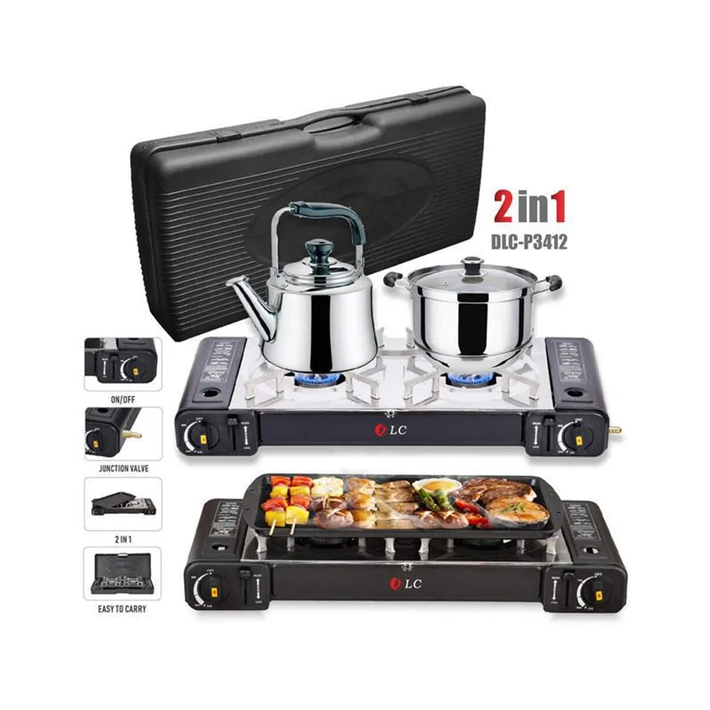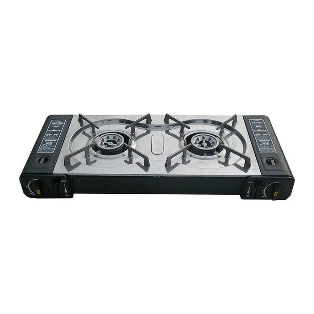 موقد غاز محمول مزدوج الشعلة 🔥🔥، بقدرة عالية على إنتاج الحرارة 💪⚡، مع إشعال أوتوماتيك 🔄✨." اطلب هسه .