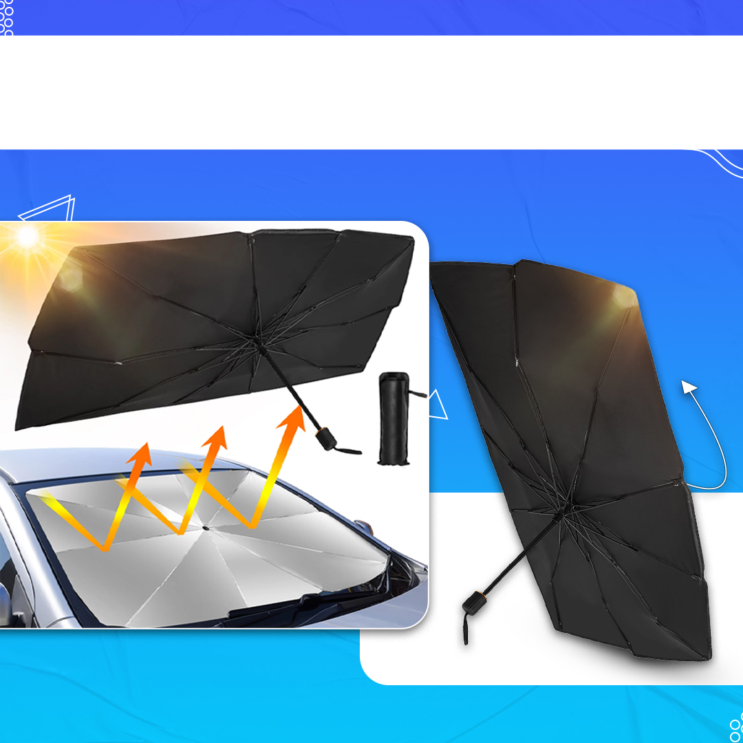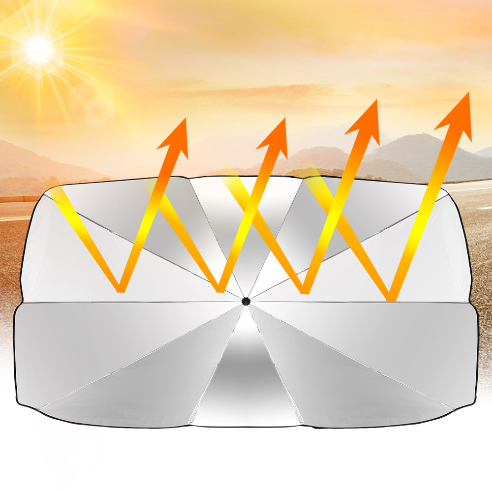 • تصنع مظلات الزجاج الأمامي من مواد عاكسة للأشعة فوق البنفسجية مقاومة للحرارة وعالية الكثافة، مما يحجب أشعة الشمس بشكل فعال ويحافظ على برودة السيارة.