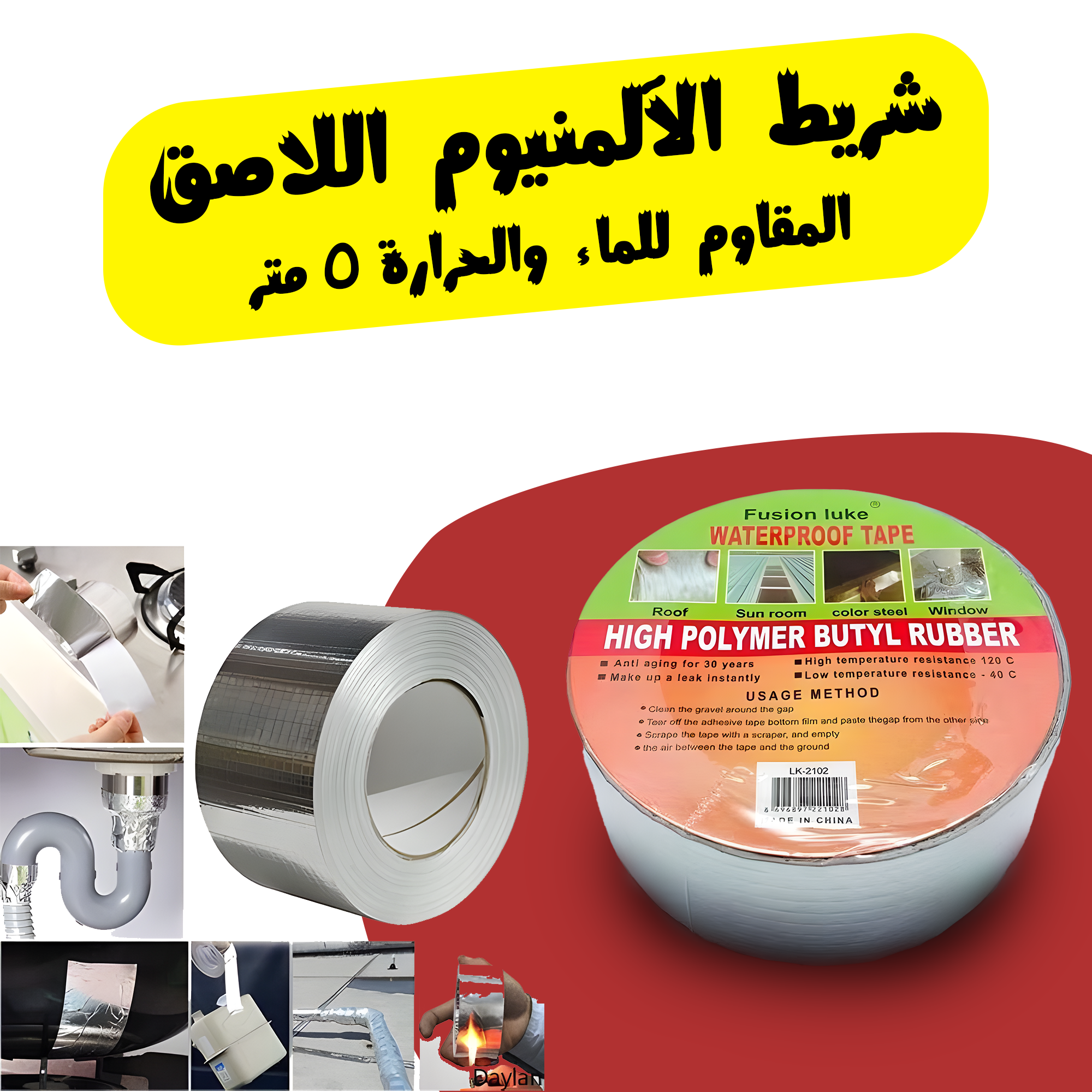 • 🎯 لا يهم شنو المشكلة – شريط الألمنيوم اللاصق يحلها! مقاوم للماء والحرارة 🔥💧 ويدوم وياك بكل الظروف! ✨" اطلب هسه