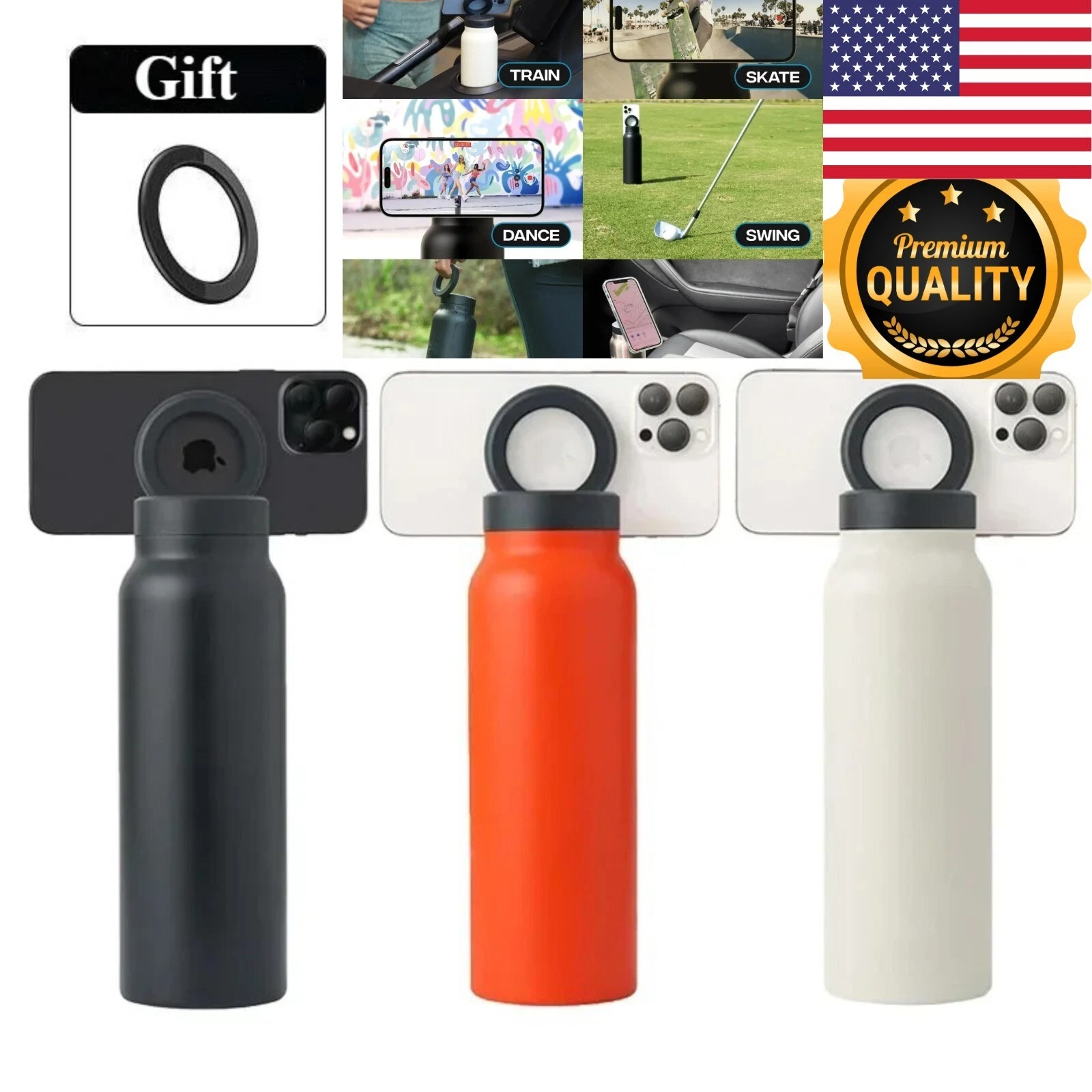 جرب زجاجة الميّة الـ 24 أونصة المصنوعة من ستانلس ستيل مع حامل موبايل مغناطيسي – الحل العصري للچبسة والسفر والگعدة 😎💧📱